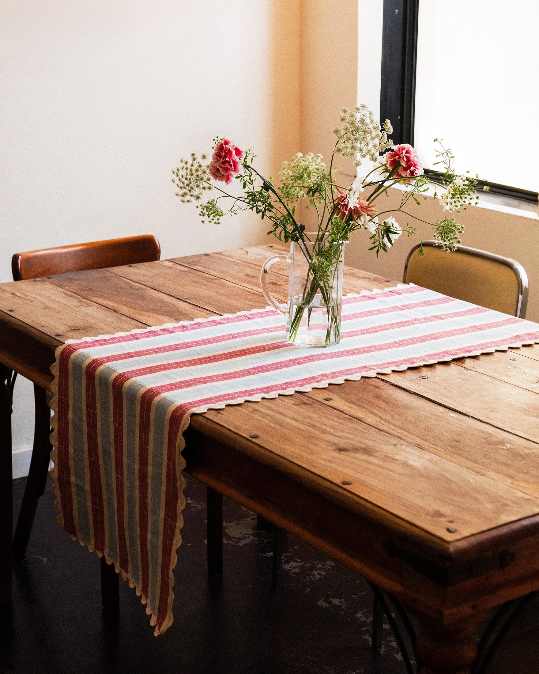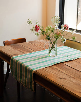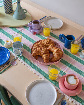 Ein bisschen weich, ein bisschen vertraut. Dieser Tischläufer fühlt sich an wie eine Schicht Komfort direkt auf Ihrem Tisch. Sie sind außerdem wendbar, mit einer schlichten Rückseite, falls Sie mal die Stimmung ändern möchten.