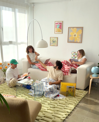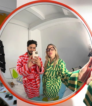 Somos Paz y Marcel, un dúo creativo con base en Barcelona. Fundamos Tarta Gelatina después de pasar, como muchos, mucho tiempo en casa durante la pandemia. Esa experiencia nos hizo darnos cuenta de que nuestro hogar se sentía un poco gris.
